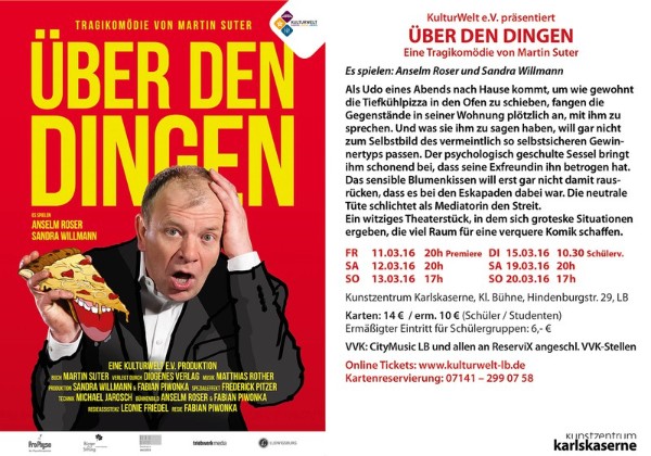 - ´Über den Dingen´ Martin Suter Premiere 11.3.2016 Karlskaserne Ludwigsburg